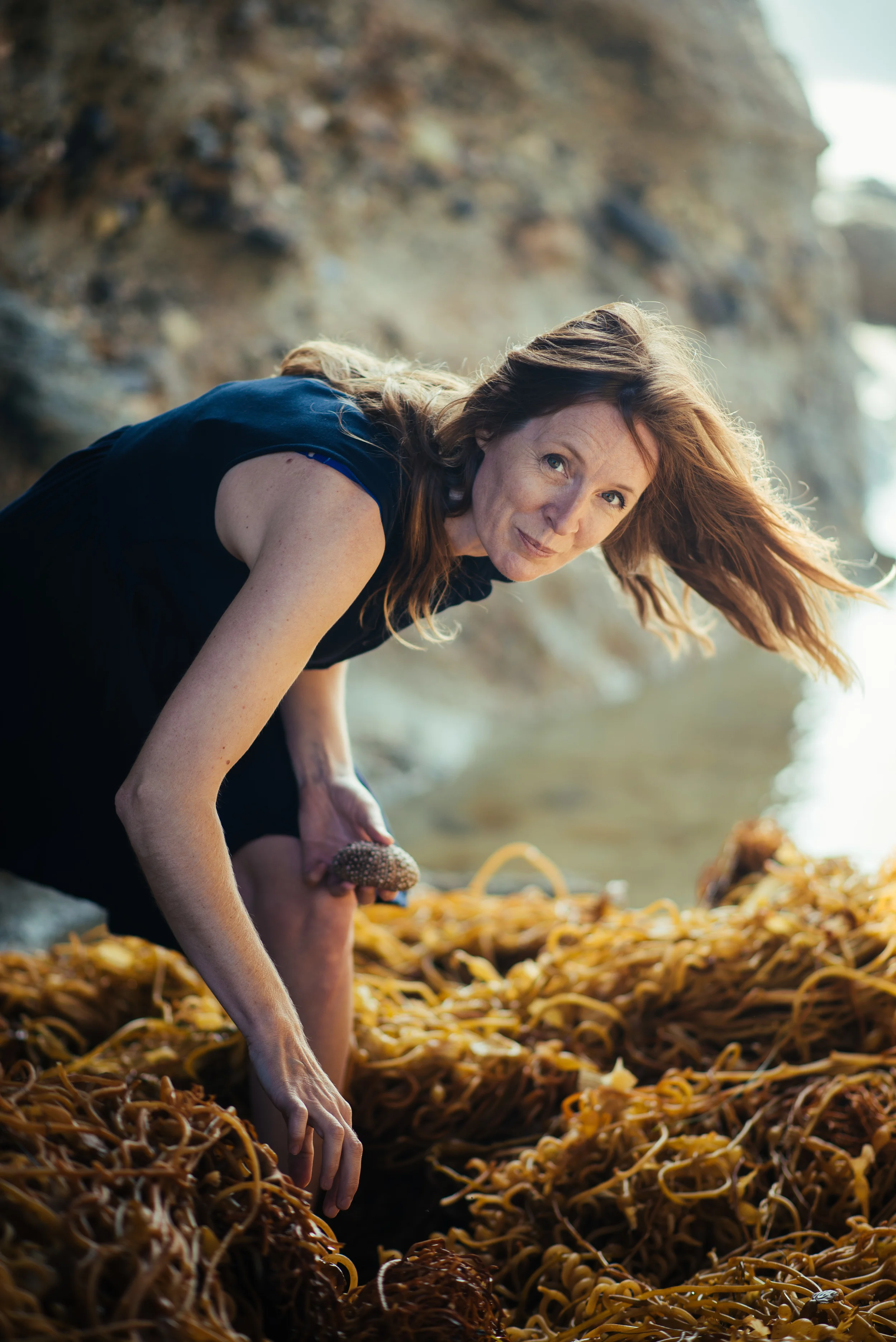 Among many other interesting things, Synnove is a Norwegian novelist, living in New Zealand. As her books are being published in Norway, and there is a bit of a distance between the two countries, its been challenging to organize photo-shoots with the Norwegian press. So she literally met the problem half-way and had me take photos while she was visiting California! We thought we would just take a camera along that morning and see what happened, with no real plan in mind. This was the first week of school, so it felt like a surprise to have the beach to ourselves after a crowded summer. Because the tide was low, we stumbled on this amazing keyhole-arch in the rocks. (I admit I got drenched by a rogue wave when my back was turned. but Synnove stayed poised and elegant the whole time.)